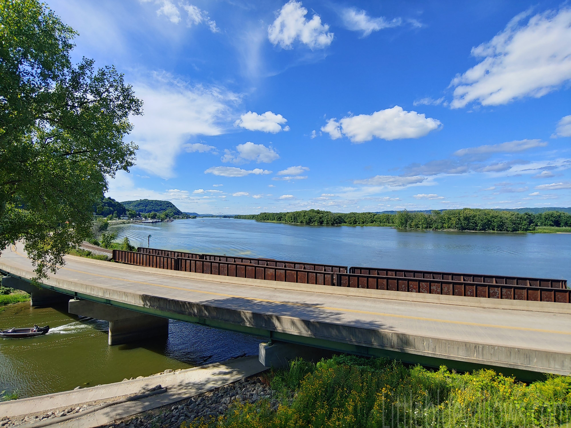 So we did not stay in Lansing long, but it is a cute town that meets the needs. Our goal was to look at the view of the Mississippi River. We visited the Driftless Area Visitor Center in Lansing. It happened to be their fifth anniversary and they were preparing for an event. Inside the building was clean and packed with information. They were extremely helpful and curious. I enjoyed standing on the balcony looking at the river. As I did, a blue heron flew by over the river.