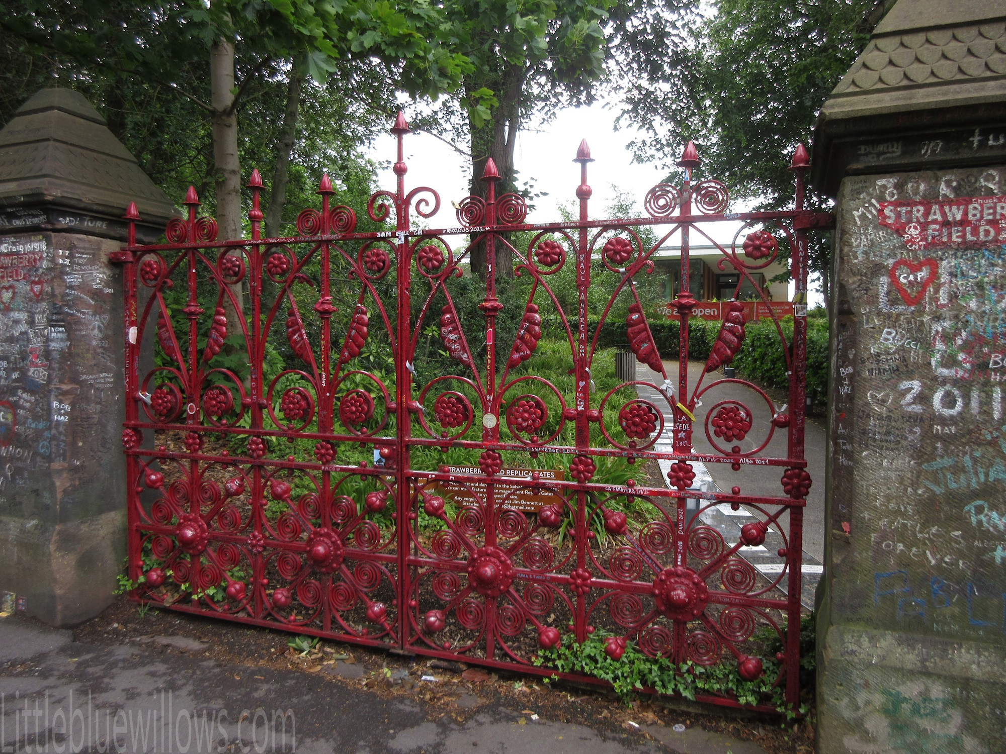 Returning back to our trip the the UK; we spent time in Liverpool which I shall post about later. We were able to visit the gardens at the newly renovated Strawberry Fields location. I had only ever seen the gates before so it is strange to go past that point. The original building had been demolished but remembered on a glass window that had its image printed on it.