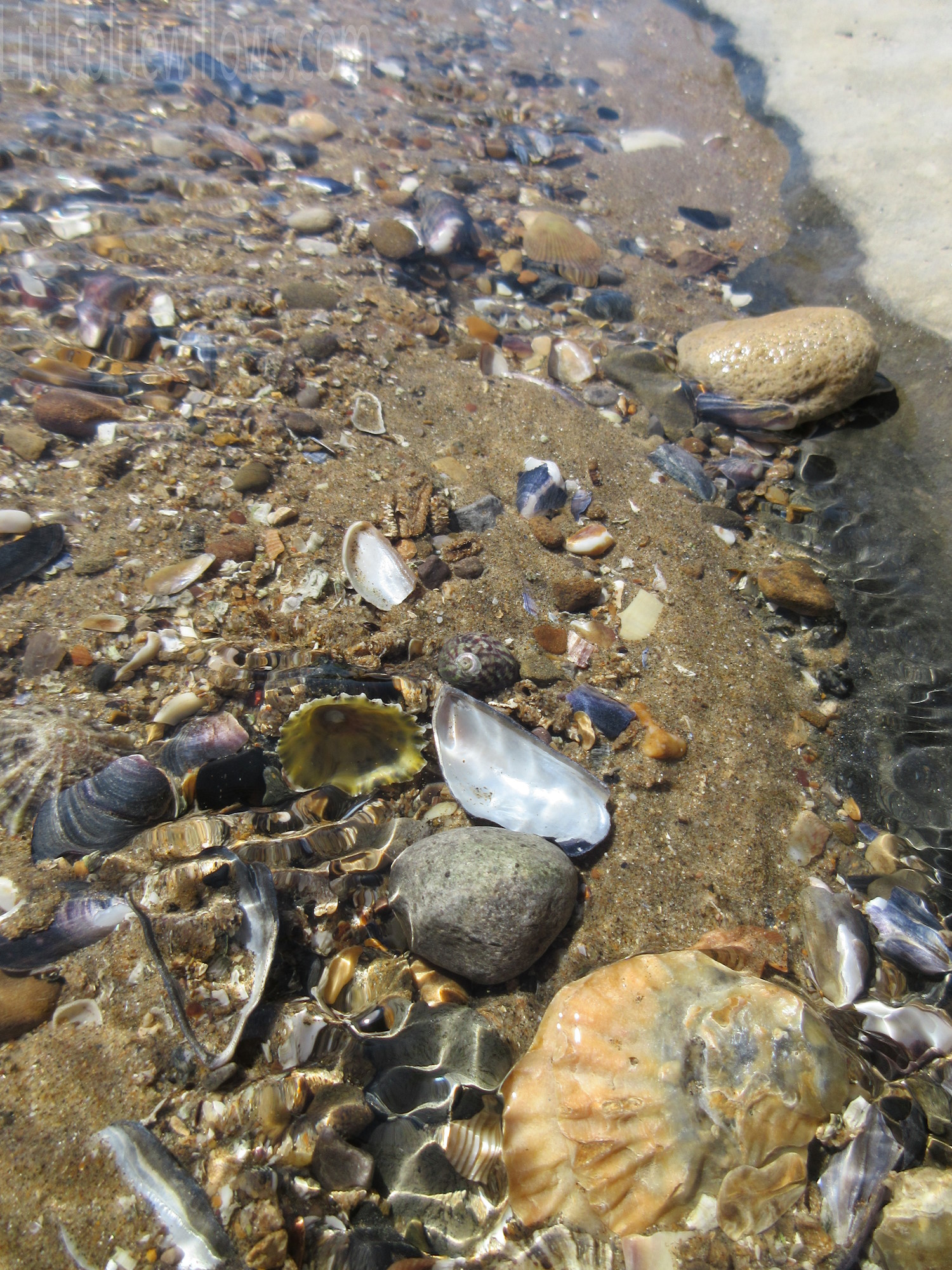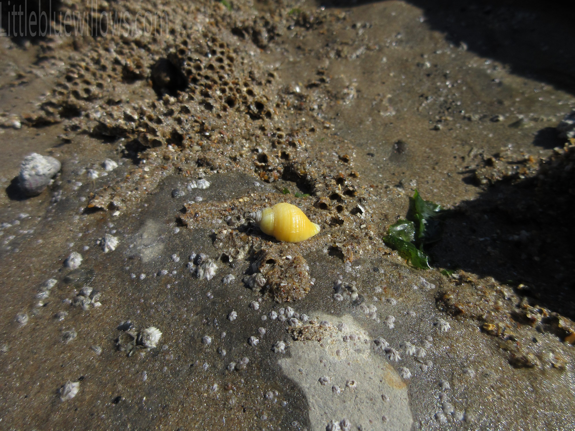 C and I took advantage of the rock formations and checked out some of the rock pools and found many little creatures while the kiddos played games with the family. This rocky part of the beach is where the shells seemed to be more prolific. I was surprised to see one of the most yellow shells I have ever seen in the rock pools. This day trip along with Lyme Regis made me miss going to the beach on a regular basis and looking for interesting shells and rocks.